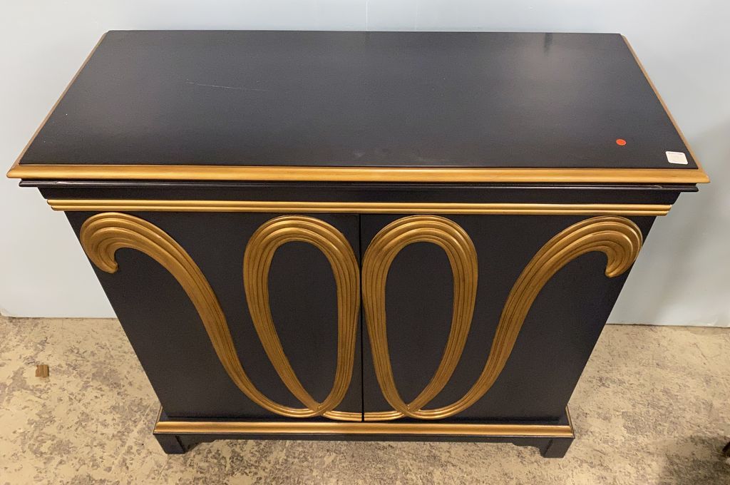 New Painted Two Door Storage Cabinet, two wood shelves, painted and gold, good condition, 36"h., 39"w., 16"d. New Painted Two Door Storage Cabinet, two wood shelves, painted and gold, good condition, 36"h., 39"w., 16"d.