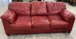 Norwalk Furniture Co. Red Leather Sofa, used, good condition, three cushion, made in USA, 7'3 w. Norwalk Furniture Co. Red Leather Sofa, used, good condition, three cushion, made in USA, 7'3 w.