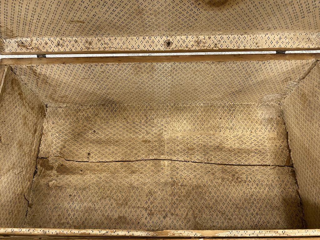 Horace Rice Co. Antique Trunk, lift top, NWP monogrammed on top, 15"h., 39"w. Horace Rice Co. Antique Trunk, lift top, NWP monogrammed on top, 15"h., 39"w.