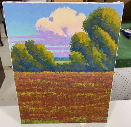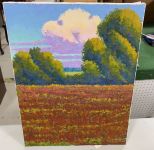 "Milo Field" Oil by Richard Moor, unframed, retail 200.00, 18" x 14". "Milo Field" Oil by Richard Moor, unframed, retail 200.00, 18" x 14".