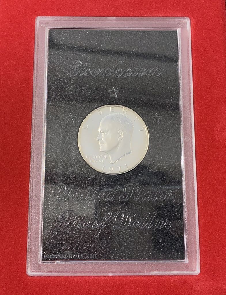 1971 Eisenhower S Mark Proof Dollar, in case. 1971 Eisenhower S Mark Proof Dollar, in case.