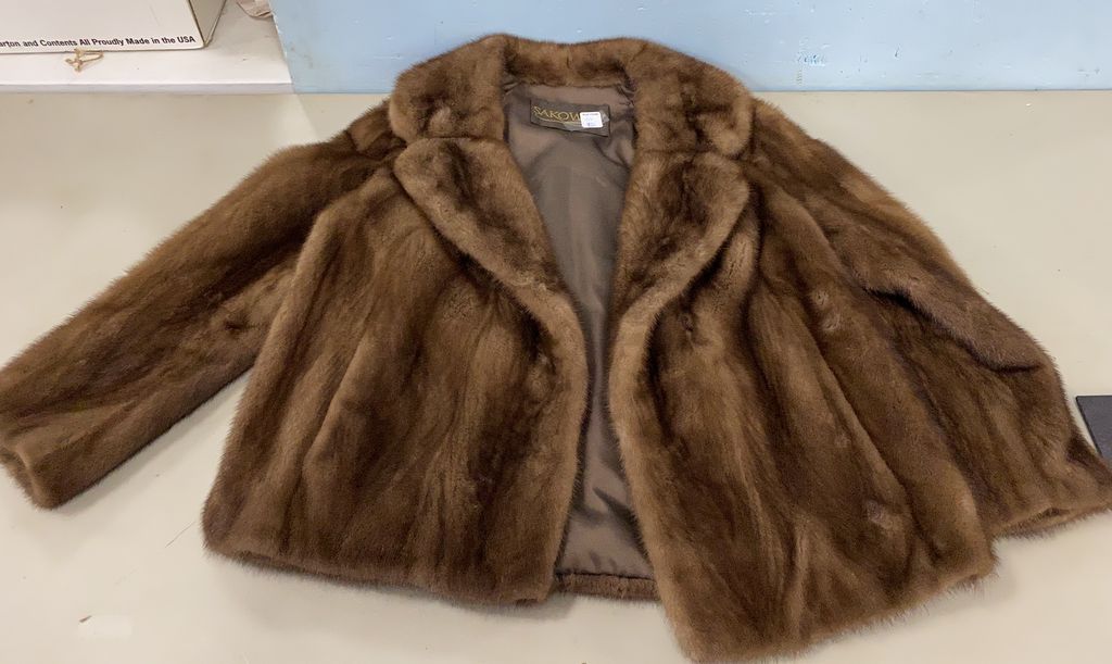 Sakowitz Mink Coat, monogrammed interior, size looks to be small/medium. Sakowitz Mink Coat, monogrammed interior, size looks to be small/medium.