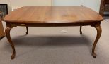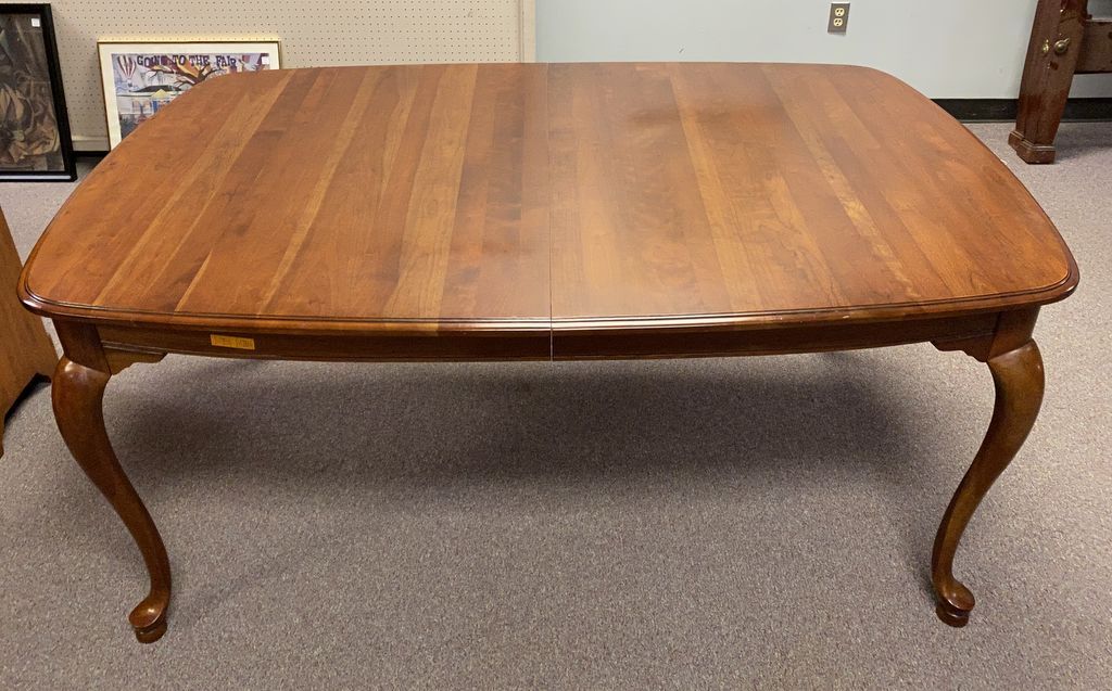 Late 20th Century Cherry Queen Anne Dining Table, includes table pads and three leaves, matching chair are lot 0462. Late 20th Century Cherry Queen Anne Dining Table, includes table pads and three leaves, matching chair are lot 0462.