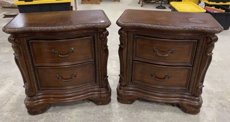Modern Cherry Two Drawer Night Stand, ornate border, Store Bought, light top wear, 30"h., 30"w. 19"d. Modern Cherry Two Drawer Night Stand, ornate border, Store Bought, light top wear, 30"h., 30"w. 19"d.