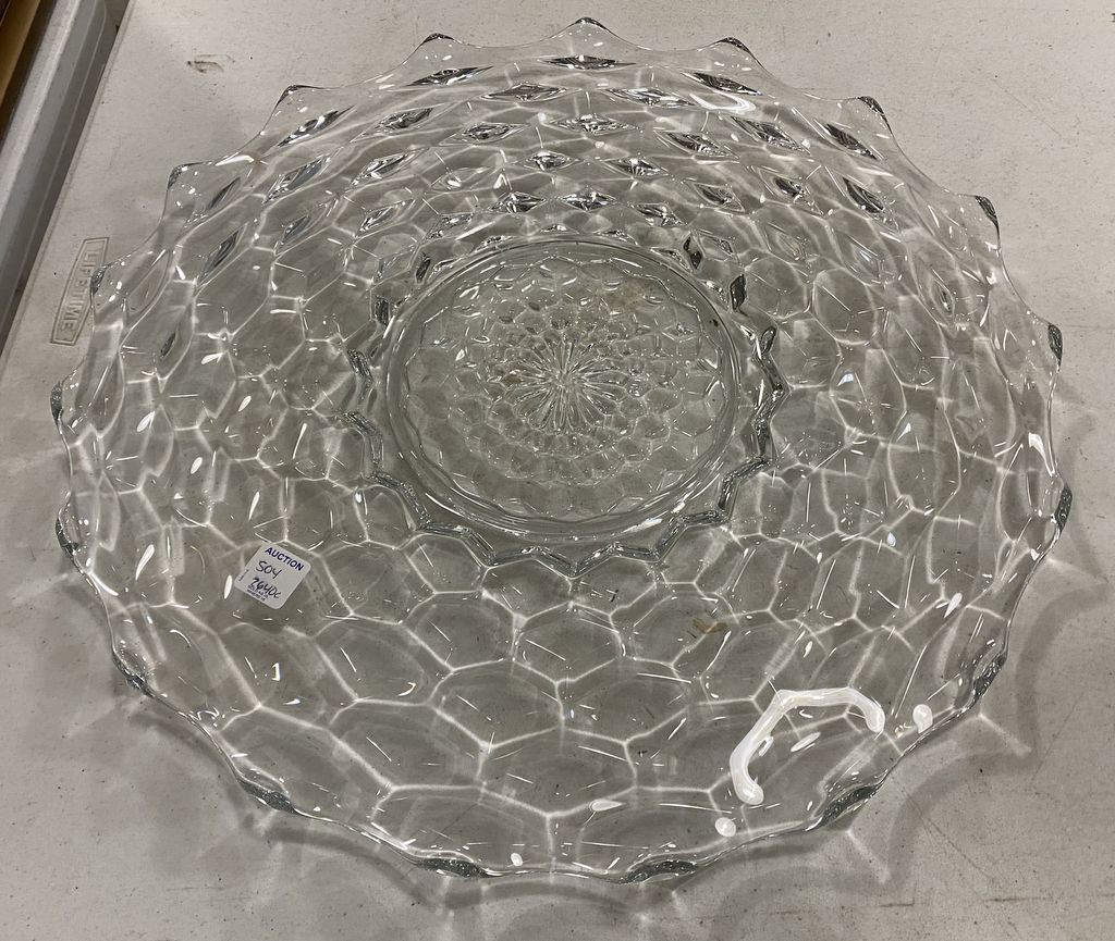 Fostoria American Clear Punch Bowl Underplate, good condition, 18"dia. Fostoria American Clear Punch Bowl Underplate, good condition, 18"dia.