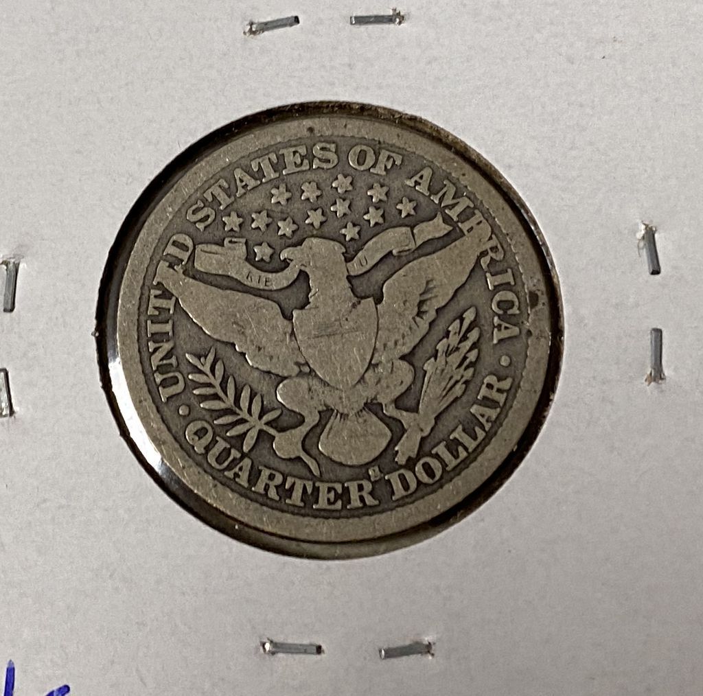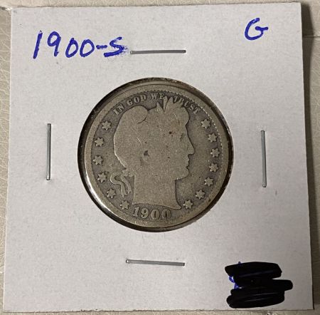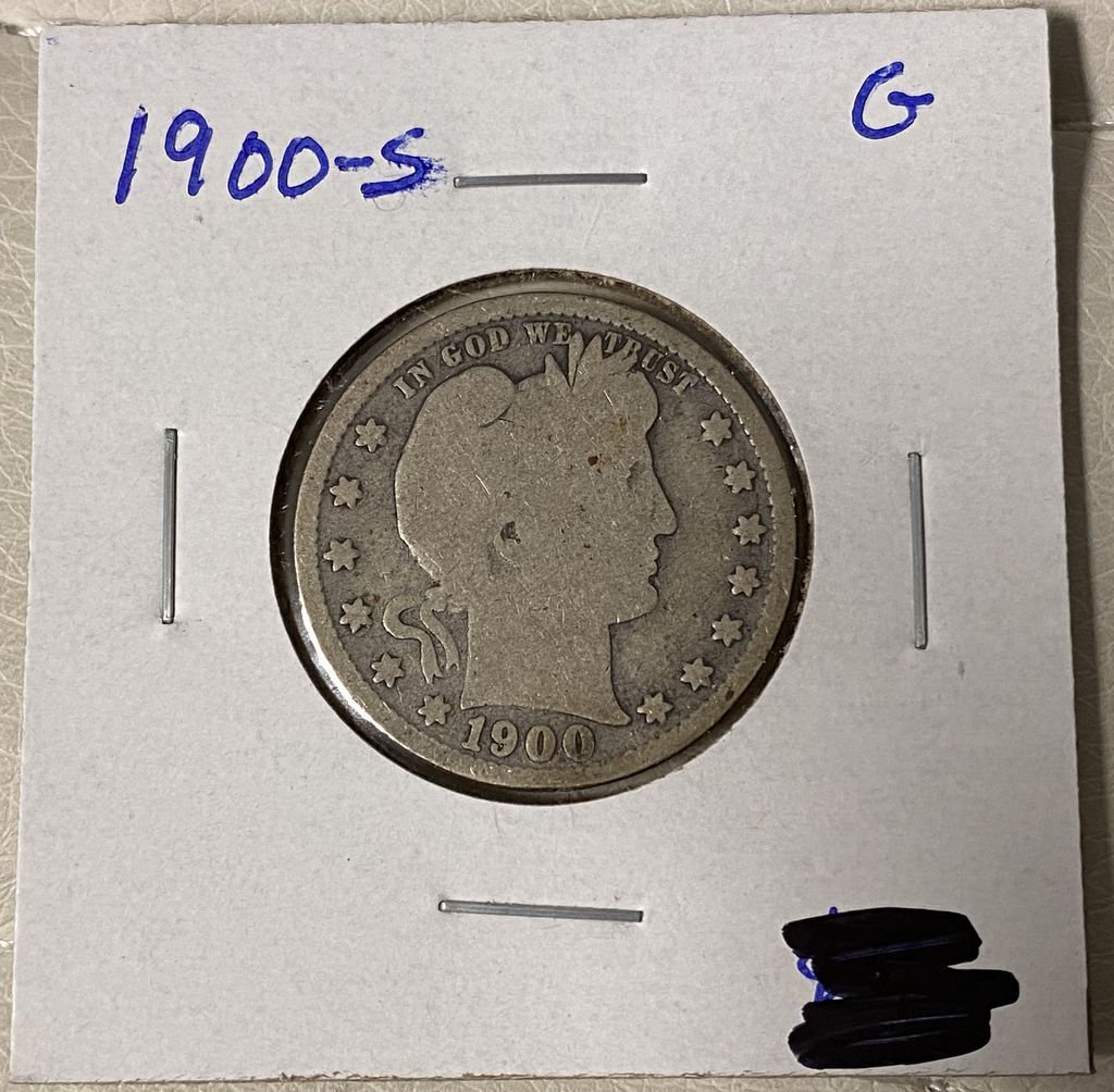 1900-S Barber Quarter, good condition, paper case. 1900-S Barber Quarter, good condition, paper case.