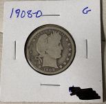 1908-D Barber Quarter, good condition, paper case. 1908-D Barber Quarter, good condition, paper case.