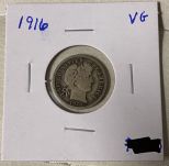 1916 Barber Dime, very good, paper case 1916 Barber Dime, very good, paper case