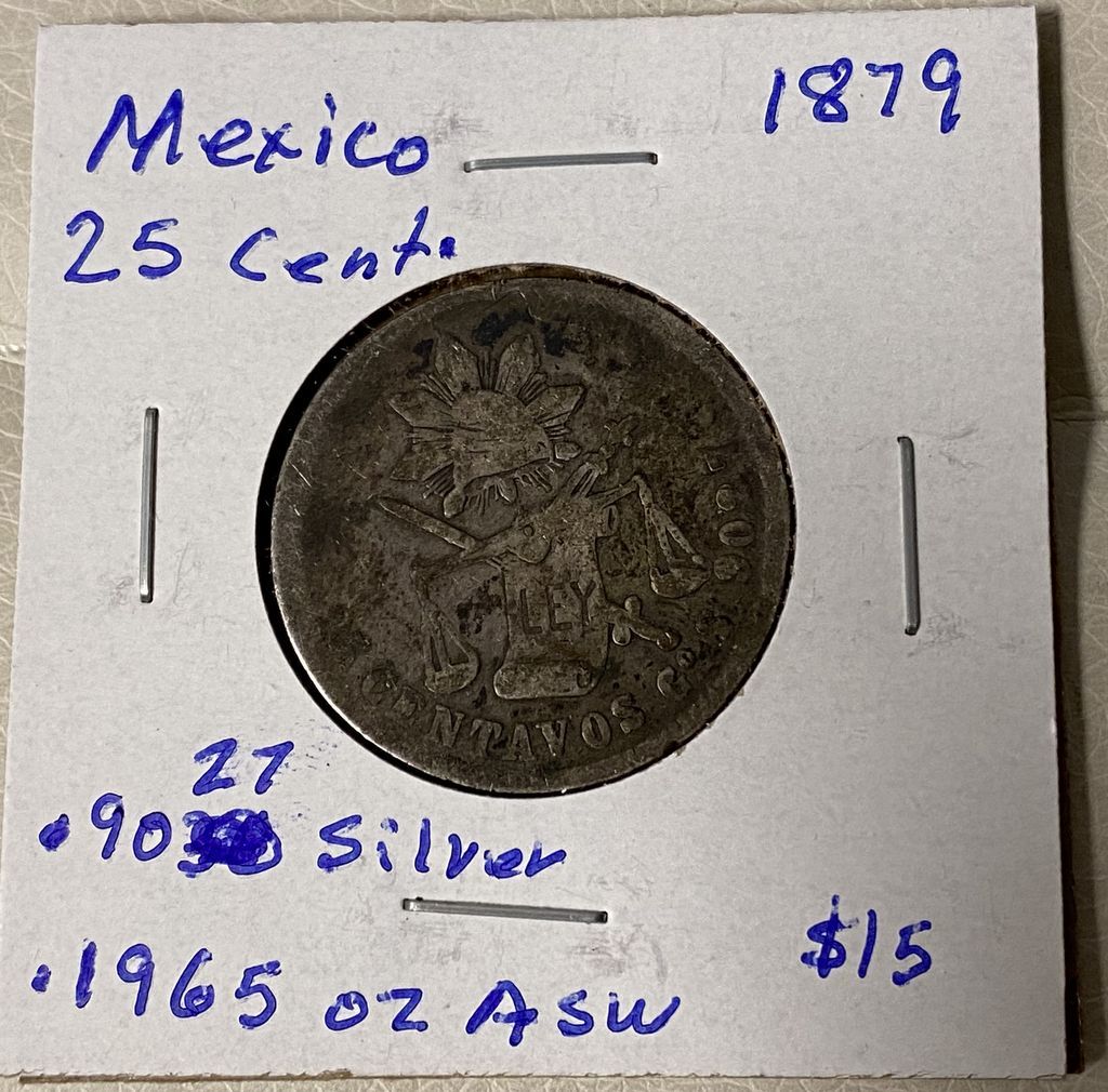 1879 Mexico 25 Centavos, good condition, paper case 1879 Mexico 25 Centavos, good condition, paper case