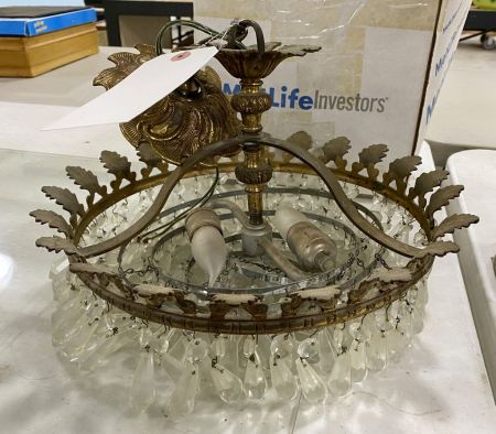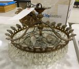 Mid 20th Century Brass Waterfall Light Fixture, crystal prisms, needs cleaning, 14"dia. Mid 20th Century Brass Waterfall Light Fixture, crystal prisms, needs cleaning, 14"dia.