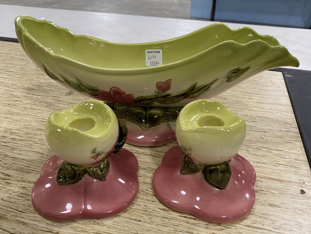 606 Hull Pottery Console Planter and Matching Candle Holders