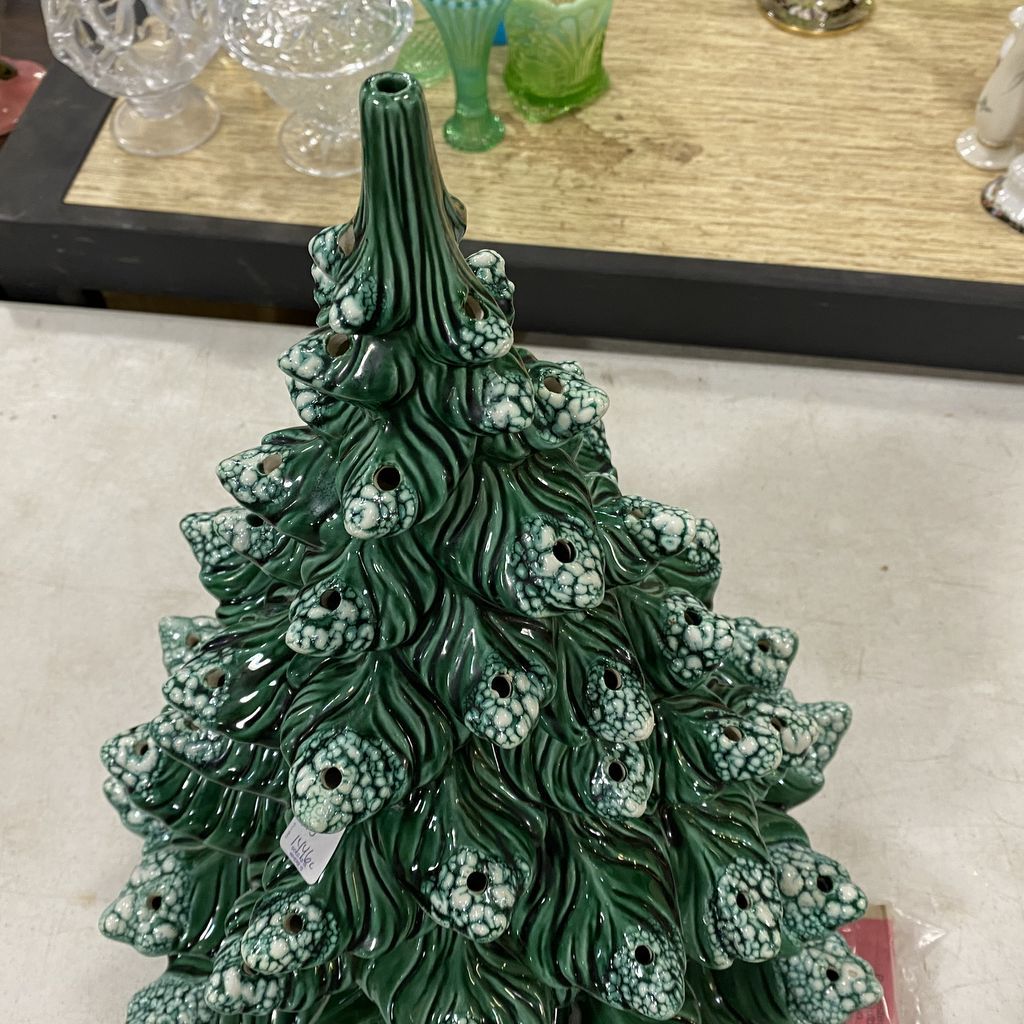 Atlantic Mold Ceramic Christmas Tree lamp, with bulbs, green painted, good condition, 24"h. Atlantic Mold Ceramic Christmas Tree lamp, with bulbs, green painted, good condition, 24"h.