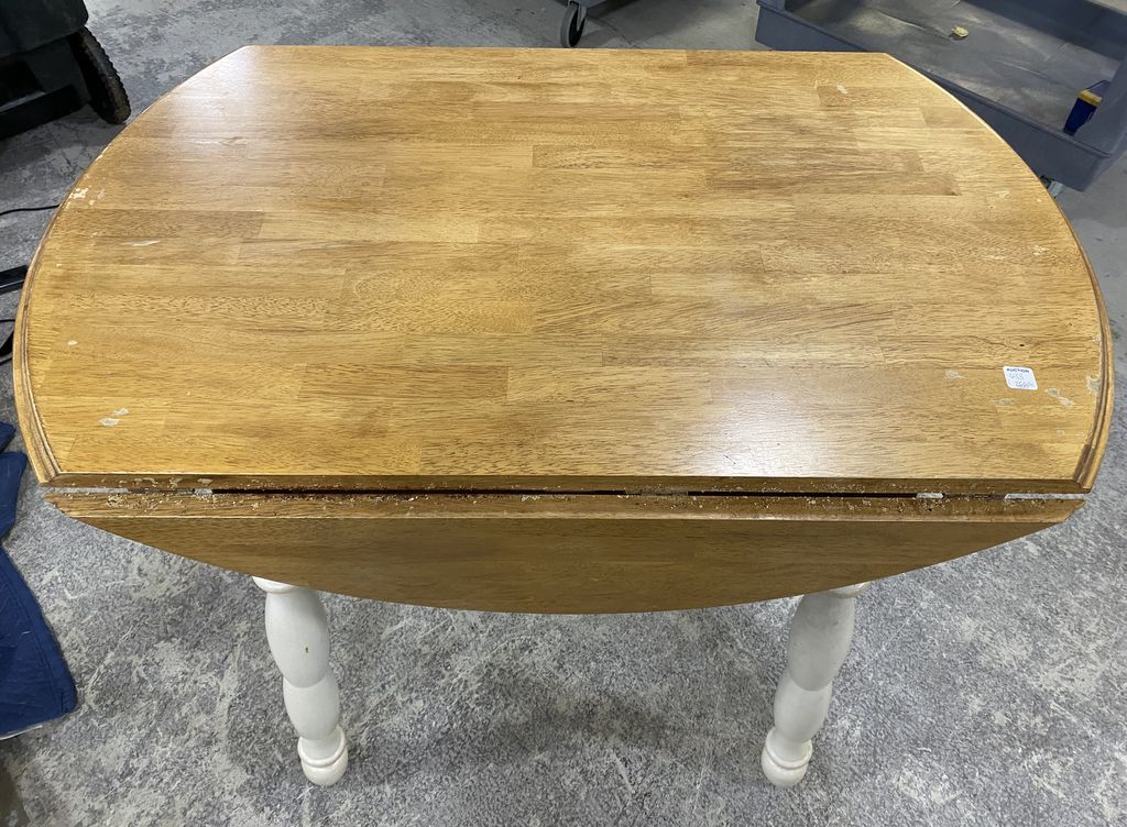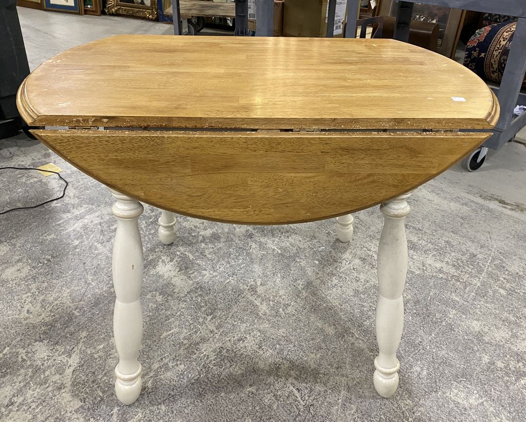 Modern Kitchen Table, drop leaf, white painted base, 30"h., 42"w. Modern Kitchen Table, drop leaf, white painted base, 30"h., 42"w.