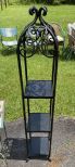 Metal Three Shelf Stands, marble shelves, painted black. Metal Three Shelf Stands, marble shelves, painted black.