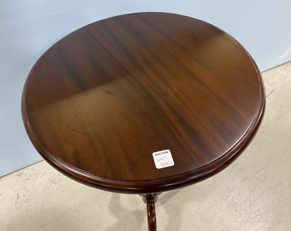 Antique Reproduction Cherry Pedestal Stand, round top, three leg, 30"h., 18"dia. Antique Reproduction Cherry Pedestal Stand, round top, three leg, 30"h., 18"dia.