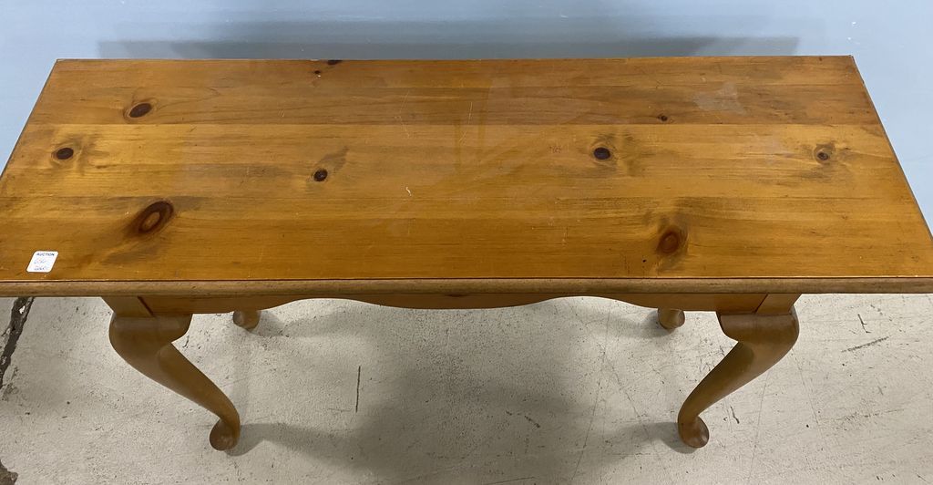 Modern Pine Sofa/Console Table, Queen Anne Style, leg bolts needs tightening, 27"h., 42"w., 17"d. Modern Pine Sofa/Console Table, Queen Anne Style, leg bolts needs tightening, 27"h., 42"w., 17"d.