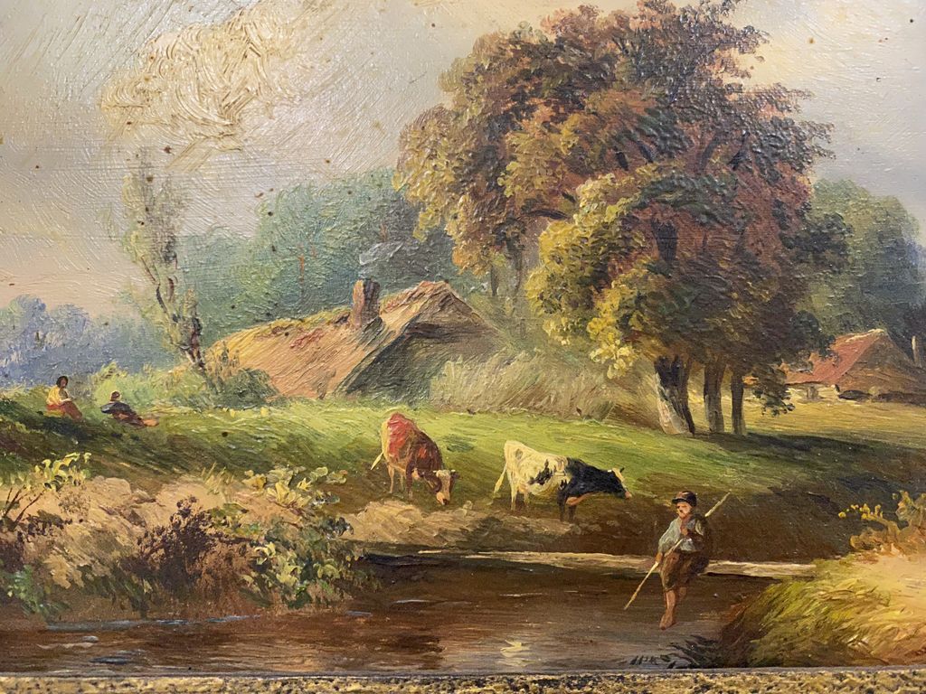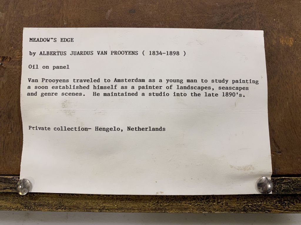 "Meadow's Edge" Painting by Albertus Juardus Van Prooyens (1834-1898), framed, on board, 8"h., 10 1/2"w. "Meadow's Edge" Painting by Albertus Juardus Van Prooyens (1834-1898), framed, on board, 8"h., 10 1/2"w.