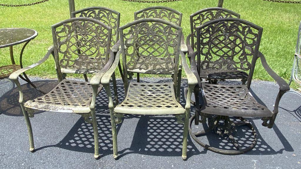 669 6 Cast Metal Outdoor Patio Chairs