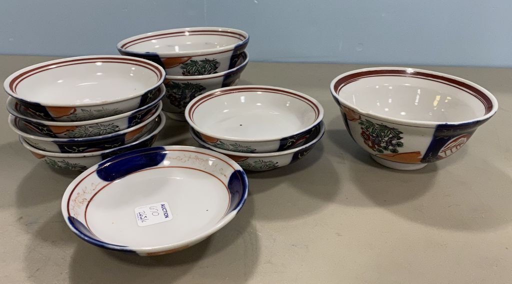 10 Imari Porcelain Bowls, Japan, hand painted, 6"dia. 10 Imari Porcelain Bowls, Japan, hand painted, 6"dia.
