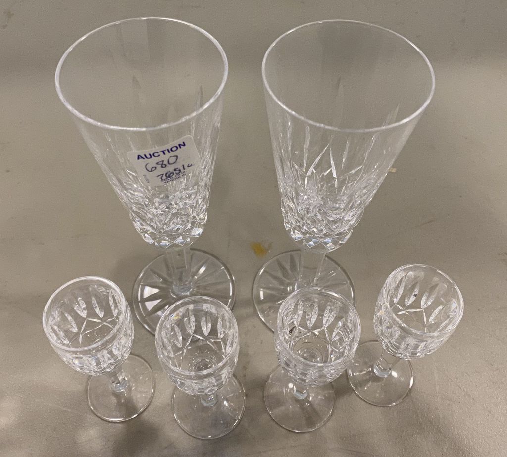 680 Waterford Crystal Wine Glasses and Waterford 3 Cordials
