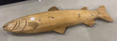 Wood Carved Salmon, wall hanging decor, 36"w. Wood Carved Salmon, wall hanging decor, 36"w.