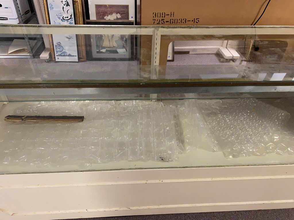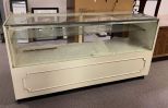 Vintage Display Showcase, glass with glass shelves, wood base, used. Vintage Display Showcase, glass with glass shelves, wood base, used.
