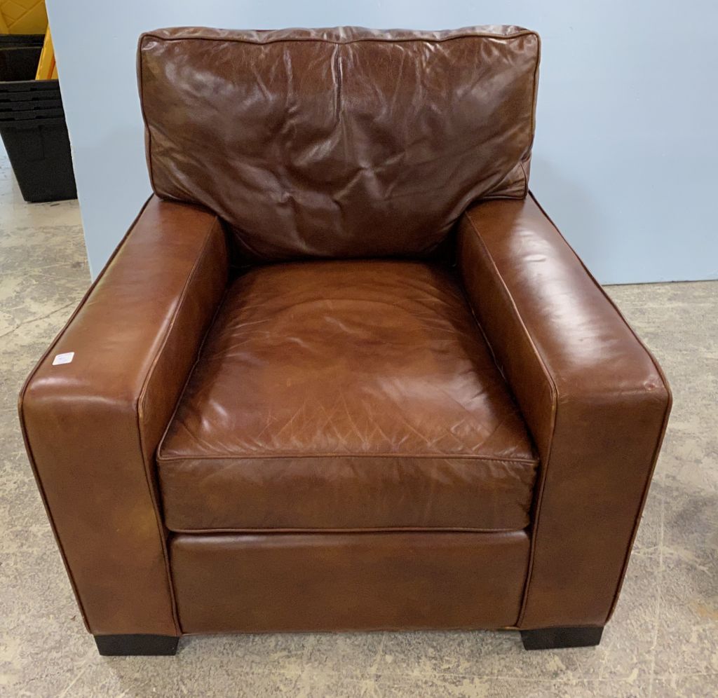 Mitchell Gold Bob Williams Frank Chair, leather, light wear. Mitchell Gold Bob Williams Frank Chair, leather, light wear.