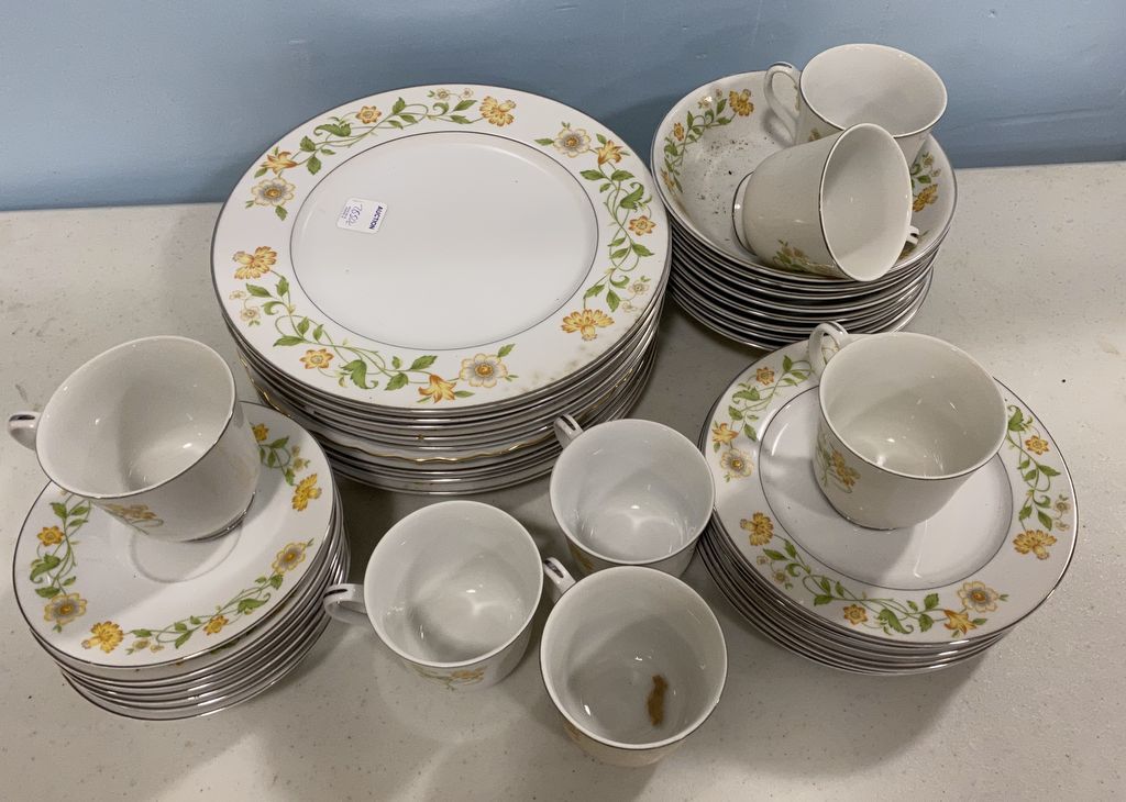 Ekco International China Set, 8 dinner, 8 cups & saucers, 8 bread & butter, 8 salad bowls, need cleaning. Ekco International China Set, 8 dinner, 8 cups & saucers, 8 bread & butter, 8 salad bowls, need cleaning.