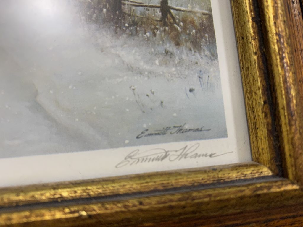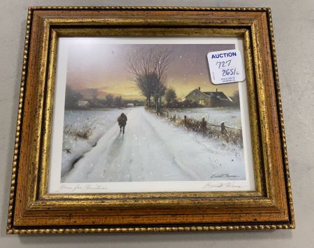 "Home for Christmas" Print Signed Emmitt Thames, pencil signed, framed, 6 1/2"h., 7"w. "Home for Christmas" Print Signed Emmitt Thames, pencil signed, framed, 6 1/2"h., 7"w.