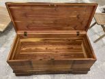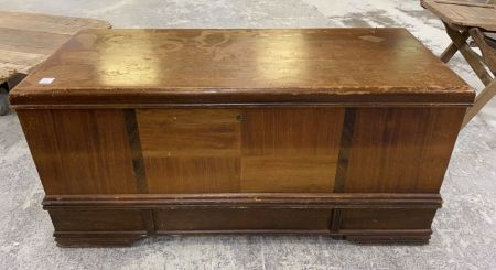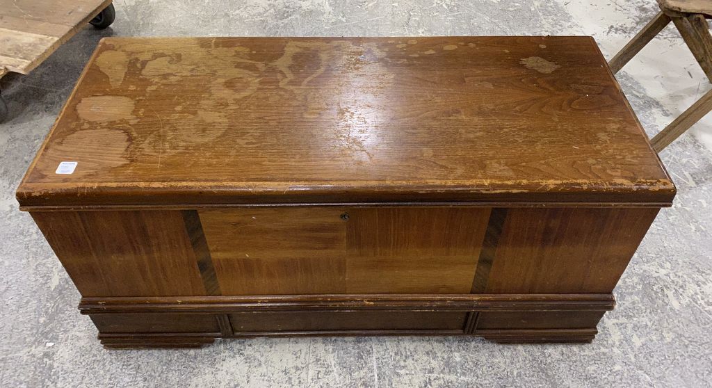 Late 20th Century Roos Chests, Walnut exterior, and interior cedar, has finish worn areas, 18"h., 36"w., 19"d. Late 20th Century Roos Chests, Walnut exterior, and interior cedar, has finish worn areas, 18"h., 36"w., 19"d.
