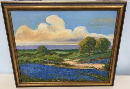Unsigned Landscape Painting on Canvas, framed, 18"h., 22"w. Unsigned Landscape Painting on Canvas, framed, 18"h., 22"w.