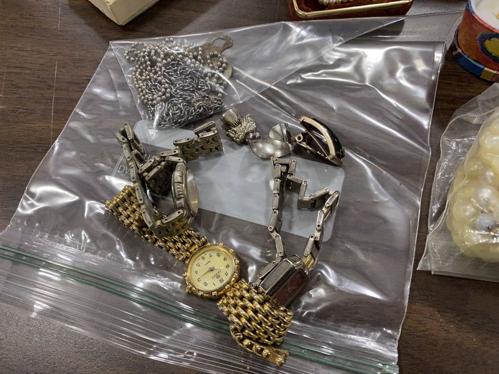 Group of Costume Jewelry, Necklaces, watches, bracelets, faux pearls, pendants, small carving set, pins. Group of Costume Jewelry, Necklaces, watches, bracelets, faux pearls, pendants, small carving set, pins.