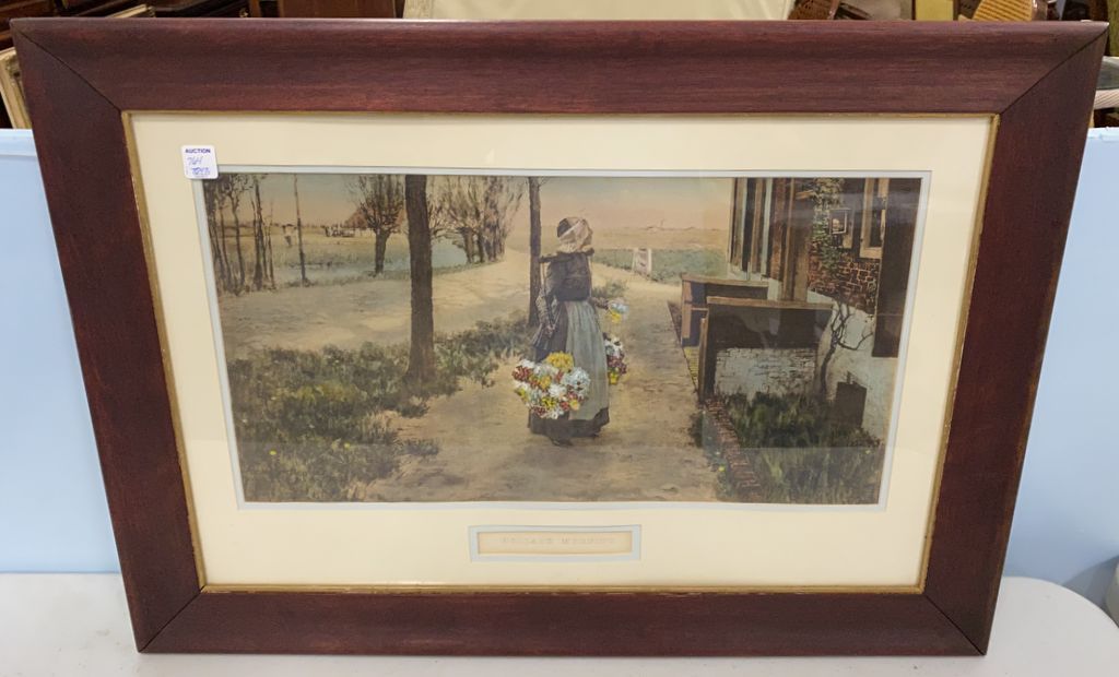 "Holland Morning" Framed Print, matted, glass, framed, 22"h., 31"w. "Holland Morning" Framed Print, matted, glass, framed, 22"h., 31"w.