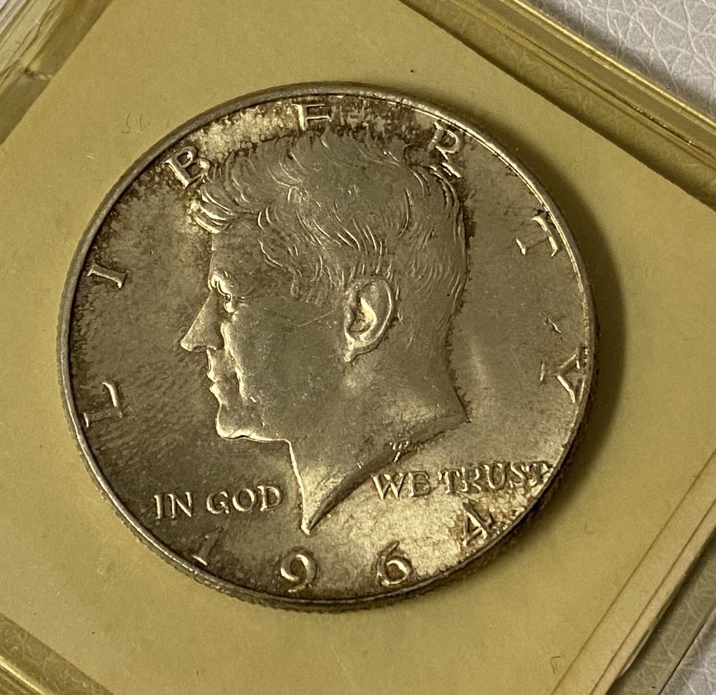 1964 Kennedy Half Dollar, fine, plastic case. 1964 Kennedy Half Dollar, fine, plastic case.