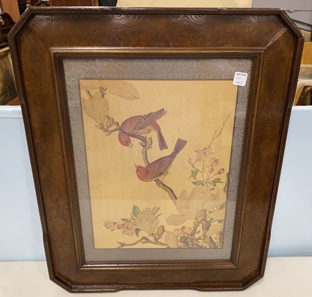 Chinese Style Bird Block print, wood framed, 26"h., 21"w. Chinese Style Bird Block print, wood framed, 26"h., 21"w.
