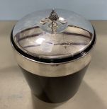 1970's Black and Silver Color metal ice bucket, with monogram, 11"h. 1970's Black and Silver Color metal ice bucket, with monogram, 11"h.