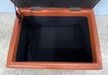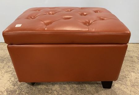 Button Tufted Vinyl Storage Trunk, lift top, like new, 17"h., 24"w. Button Tufted Vinyl Storage Trunk, lift top, like new, 17"h., 24"w.