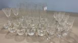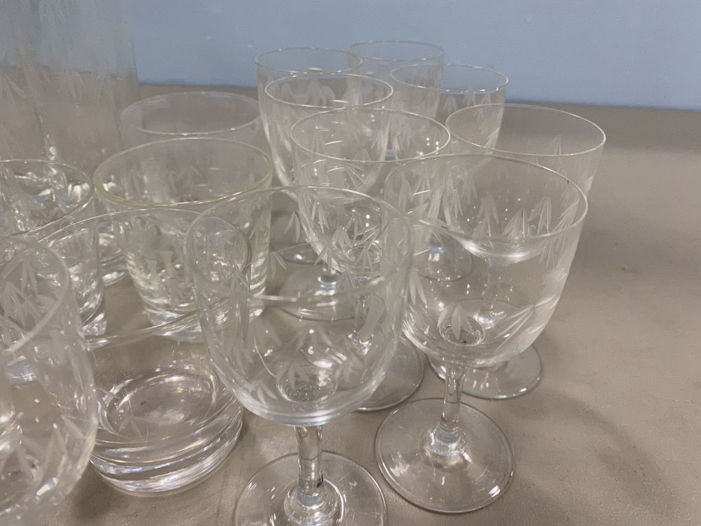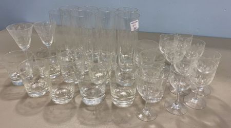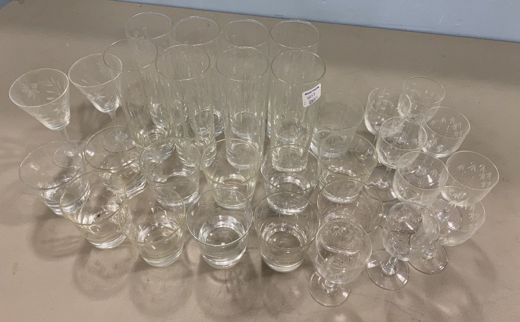 Lot of etched glassware, drinking glasses, ice tea glasses, goblets. Lot of etched glassware, drinking glasses, ice tea glasses, goblets.