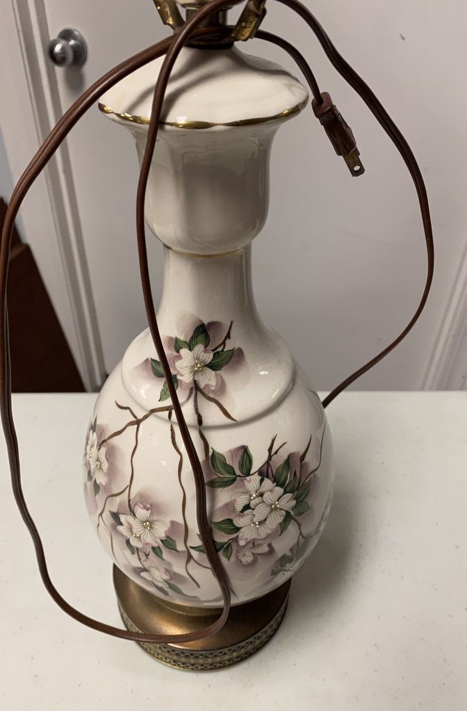 White Porcelain Vase Lamp, Floral designs White Porcelain Vase Lamp, Floral designs