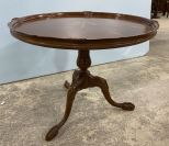 Mahogany Pedestal Round Table, ball-n-claw footed, has crack in trim, worn spots, 22"h., 29"dia. Mahogany Pedestal Round Table, ball-n-claw footed, has crack in trim, worn spots, 22"h., 29"dia.