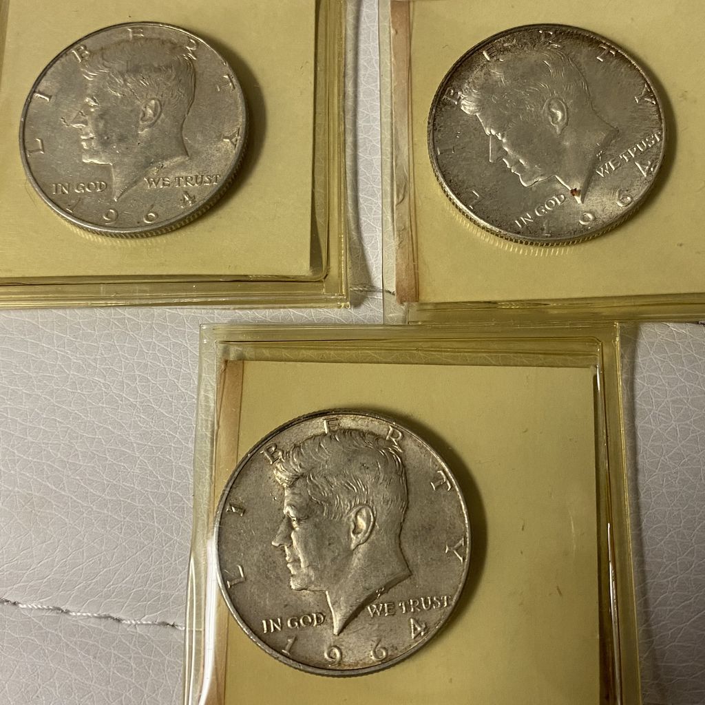3 Kennedy Half Dollars, 1964, 1964, 1964, plastic case. 3 Kennedy Half Dollars, 1964, 1964, 1964, plastic case.