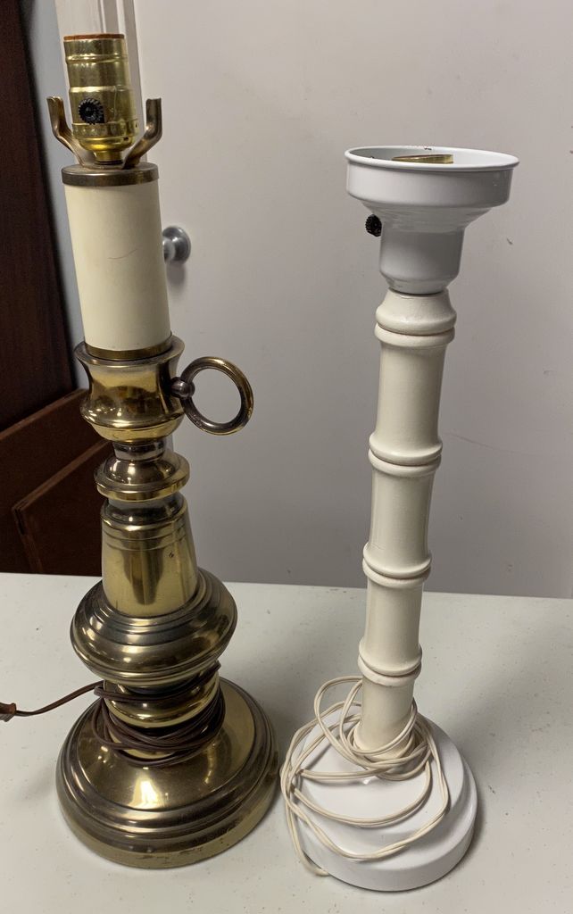 837 Brass Candle Stick Lamp and White Candle Stick Style Lamp