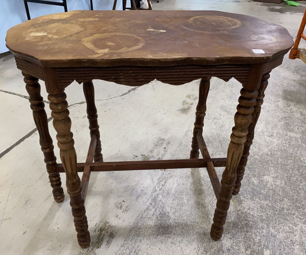 1920's Antique Parlor Table, finish is worn, 29"h., 32"w. 1920's Antique Parlor Table, finish is worn, 29"h., 32"w.