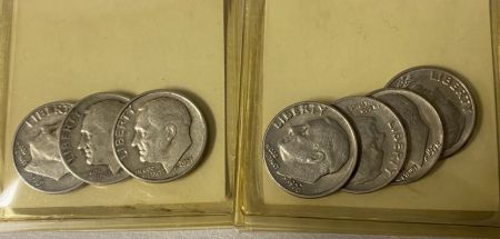 Roosevelt Dimes, 1951, 53, 66, 70, 78, 81, plastic case. Roosevelt Dimes, 1951, 53, 66, 70, 78, 81, plastic case.