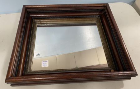 Wood Framed Mirror Plateau, good condition, 14"h., 16"w. Wood Framed Mirror Plateau, good condition, 14"h., 16"w.