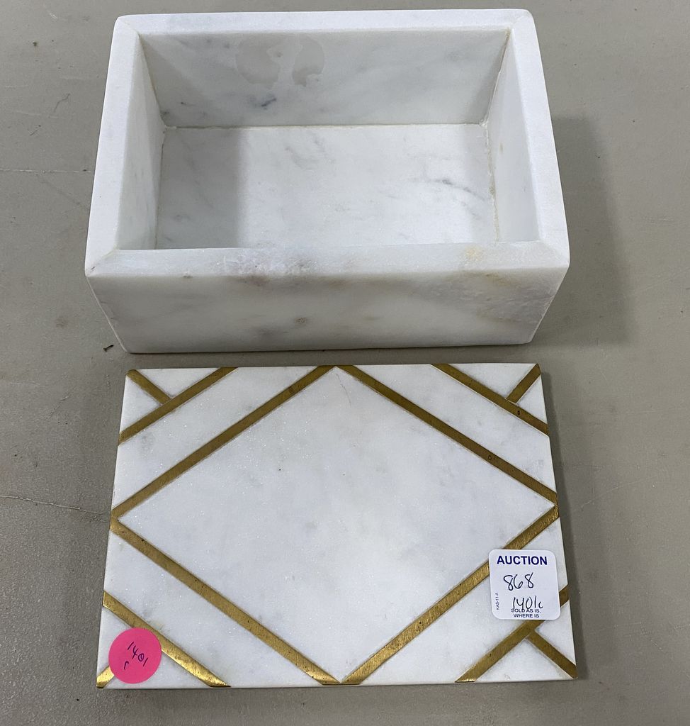 Decorative Marble Dresser Box, lift top, white marble with gold trim, 3"h., 7"w. Decorative Marble Dresser Box, lift top, white marble with gold trim, 3"h., 7"w.