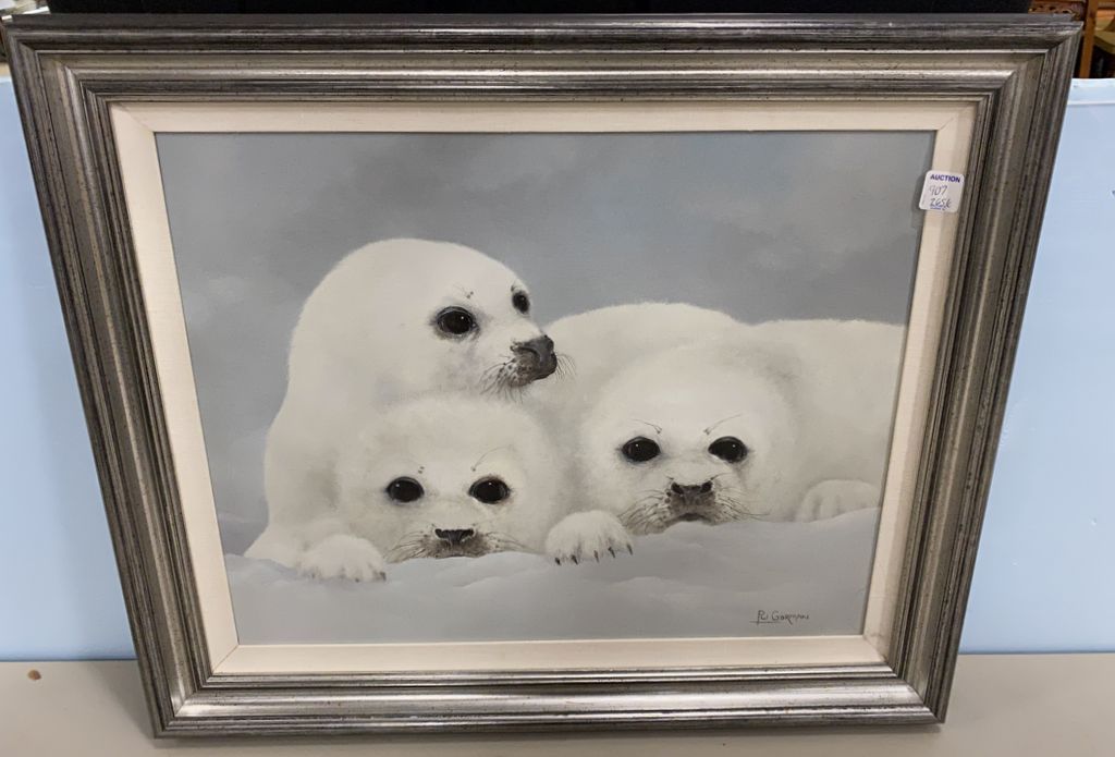 RU Gorman Painting on Board "Snow Seals" 21"h., 25"w. RU Gorman Painting on Board "Snow Seals" 21"h., 25"w.