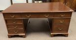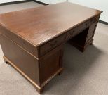 Large Cherry Partners Office Desk, drawers on both sides, with door, finish has wear and scratches, 30"h., 66"w., 35"d. Large Cherry Partners Office Desk, drawers on both sides, with door, finish has wear and scratches, 30"h., 66"w., 35"d.