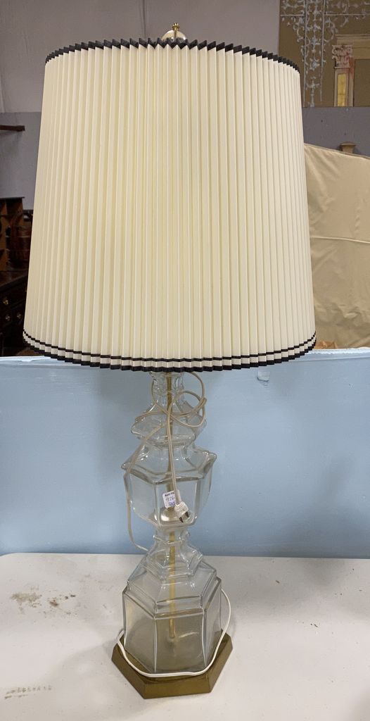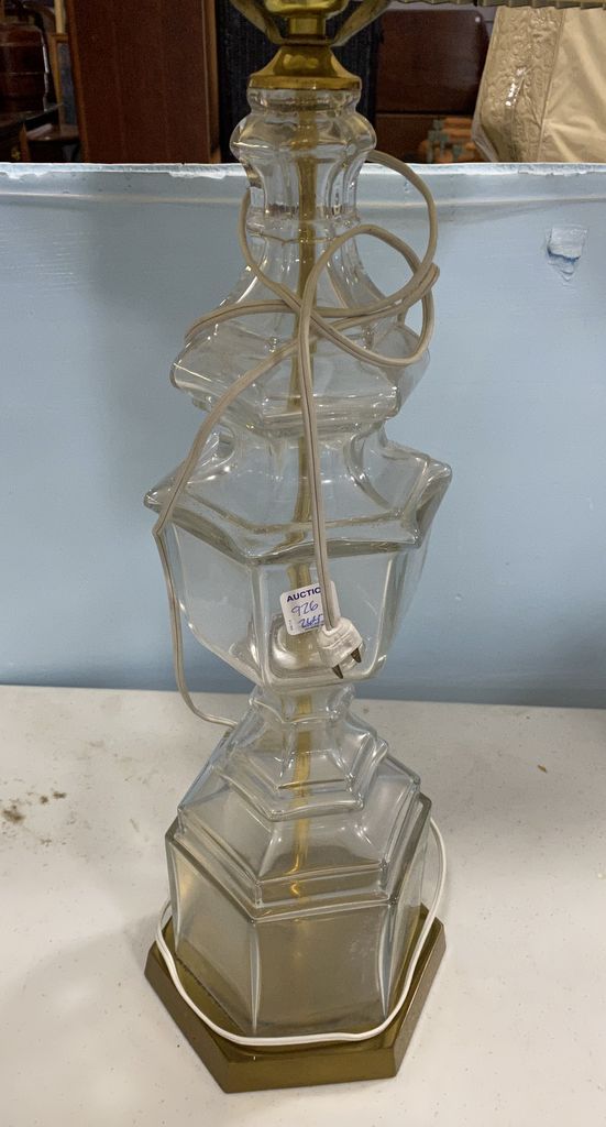 Vintage Decorative Glass Table Lamp, brass base, with shade, 25"h. Vintage Decorative Glass Table Lamp, brass base, with shade, 25"h.