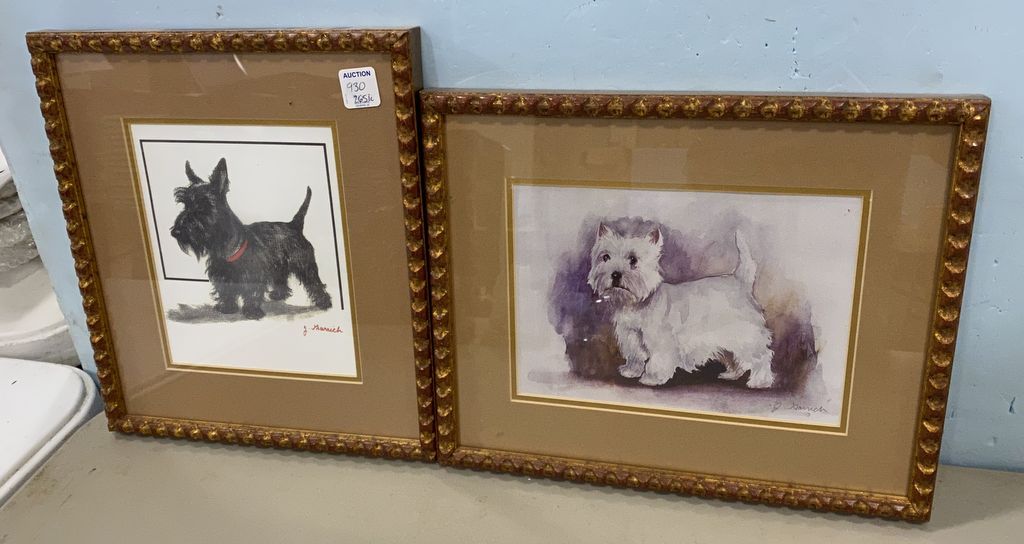 J. Garrich Scotty and Schnauzer Prints, matted, framed, 13"h., 10"w. J. Garrich Scotty and Schnauzer Prints, matted, framed, 13"h., 10"w.